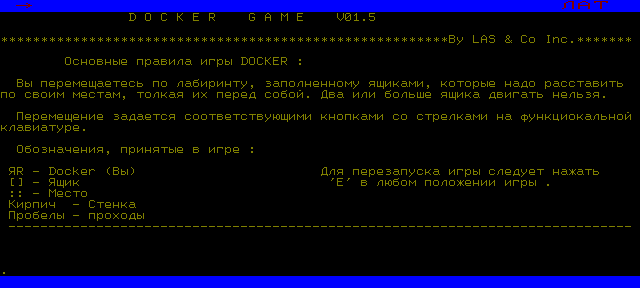 + символьная версия игры Docker